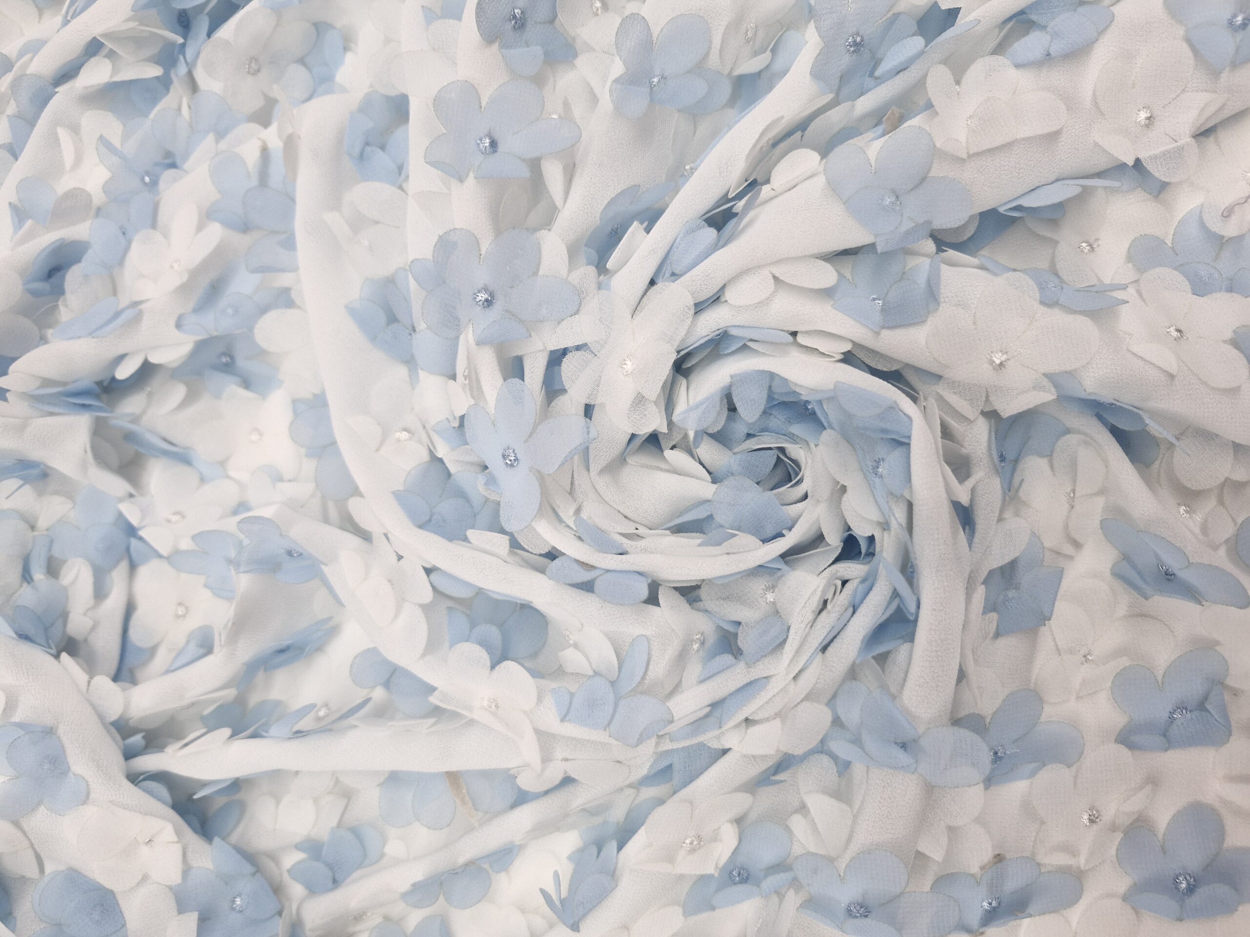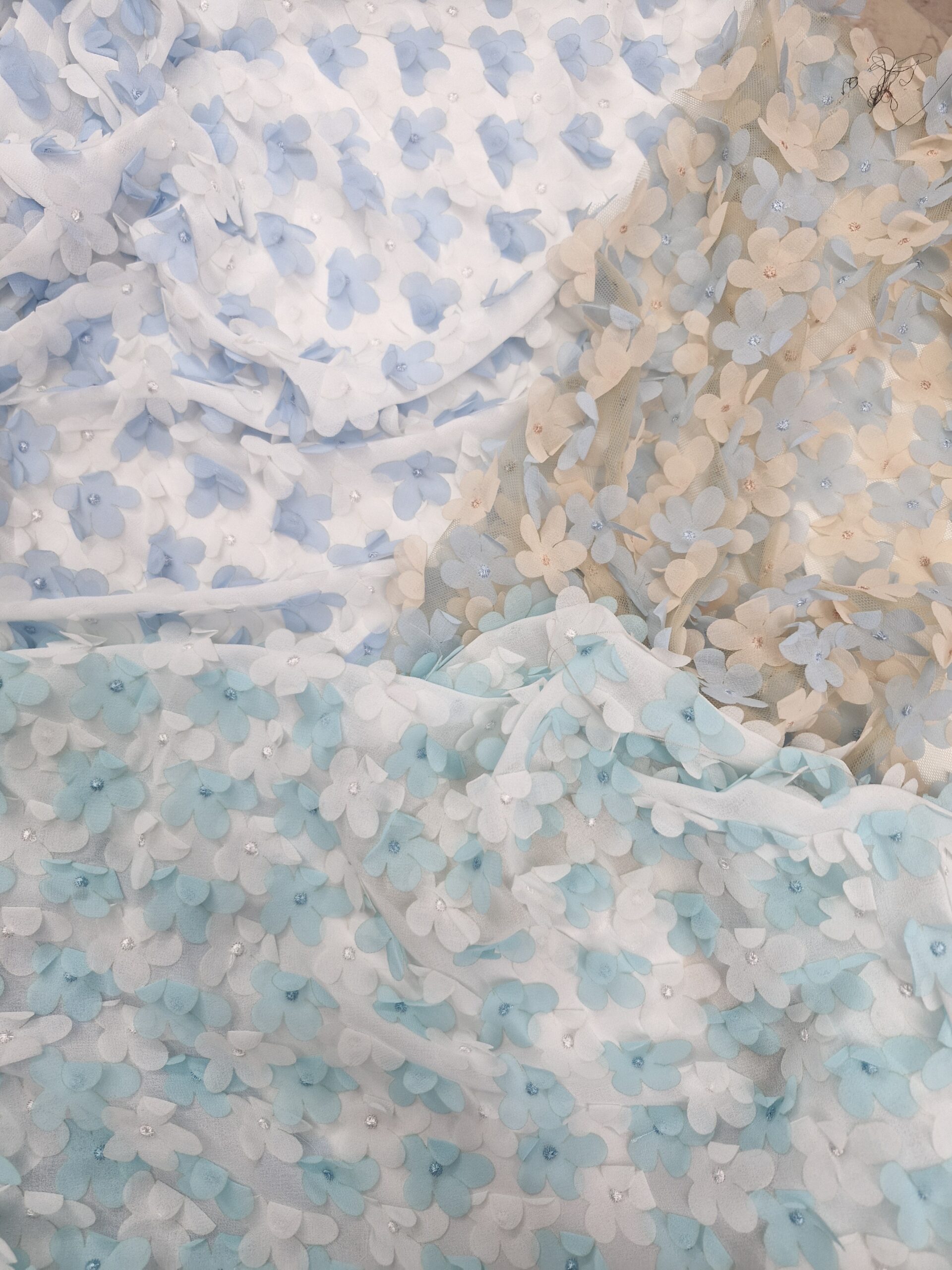 3D Çiçekli Abiyelik Kumaş, göz alıcı detayları ve zarif yapısıyla tasarımlarınıza romantik bir dokunuş katar.