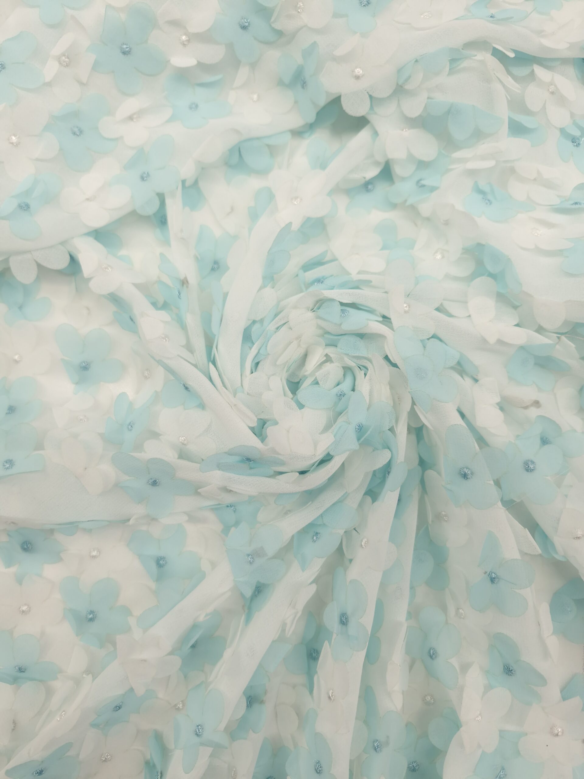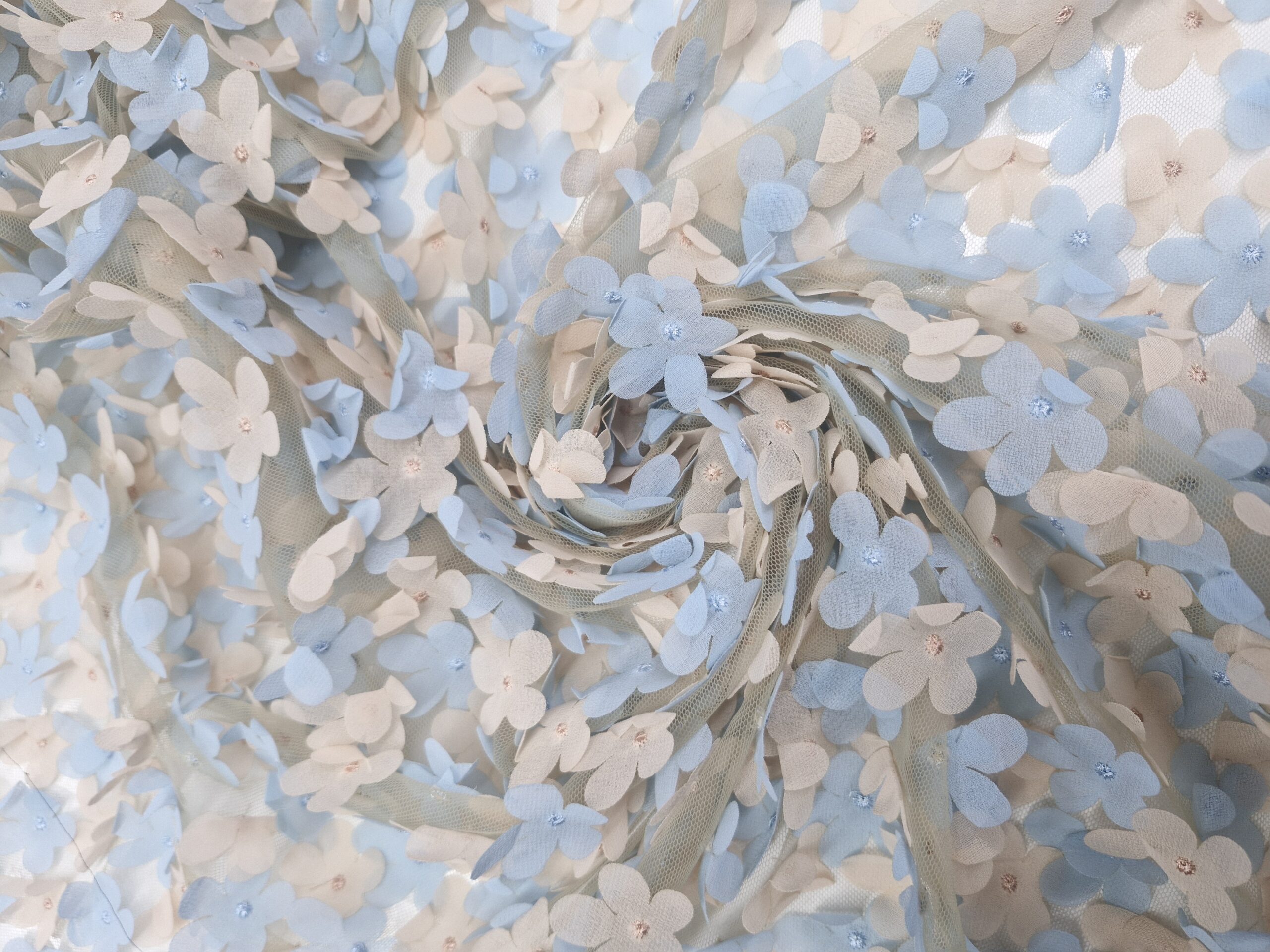 Üç boyutlu çiçek aplikeleri ve inci detaylarıyla zenginleştirilmiş 3D Çiçekli Abiyelik Kumaş, romantik ve şık tasarımlar için ideal bir seçimdir. Hafif tül zemin üzerine işlenen çiçekler, tasarımlara hacim ve hareket kazandırırken, zarif görünümüyle özel günlerde dikkat çeker.