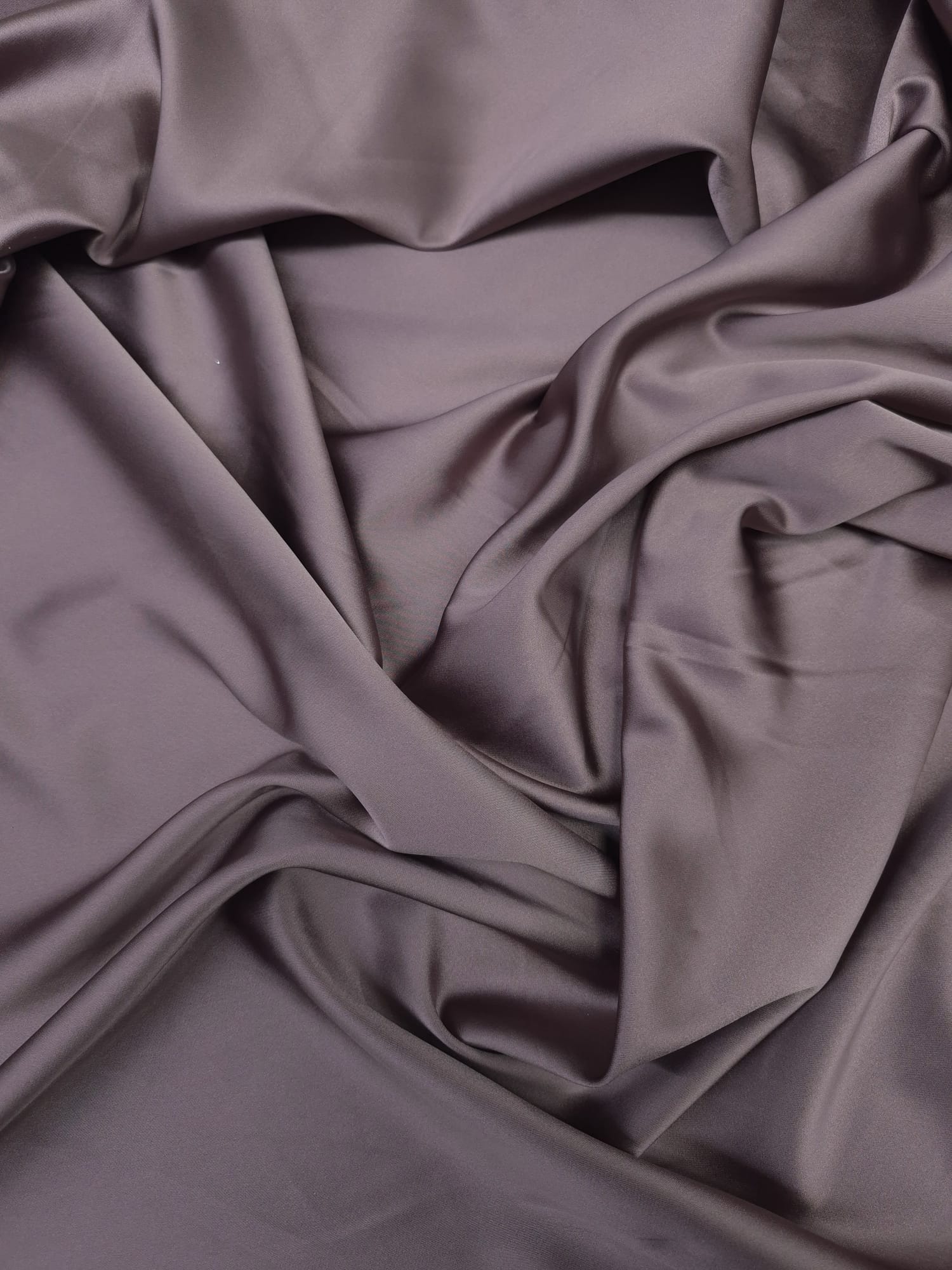 Asetat Saten, doğal ipeksi dokuya yakın yumuşak yüzeyi ve zarif parlaklığı ile öne çıkan kaliteli bir saten türüdür. Hafif ve akıcı yapısı sayesinde vücutta estetik bir düşüş sağlar. Nefes alan formu ve yumuşak tuşesiyle hem konfor hem de şıklık sunar. Parlaklığı göz yormayan, zarif bir ışıltıya sahiptir.