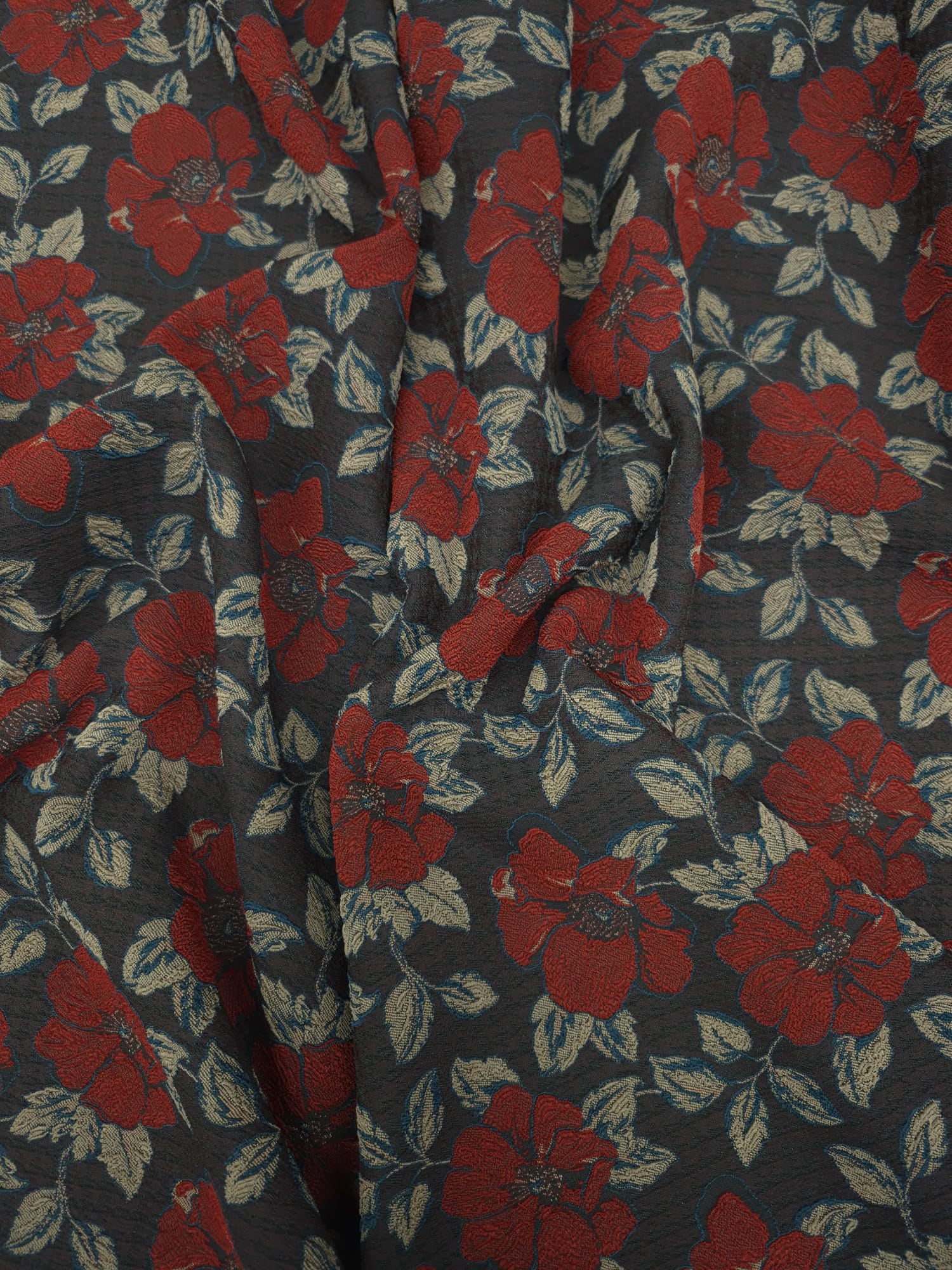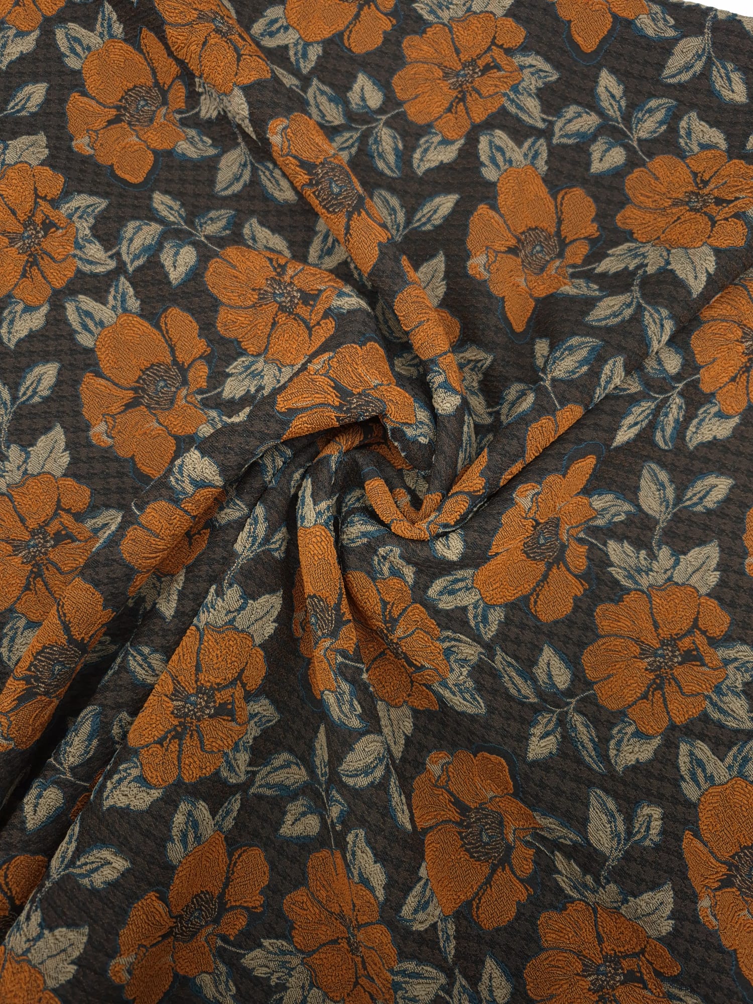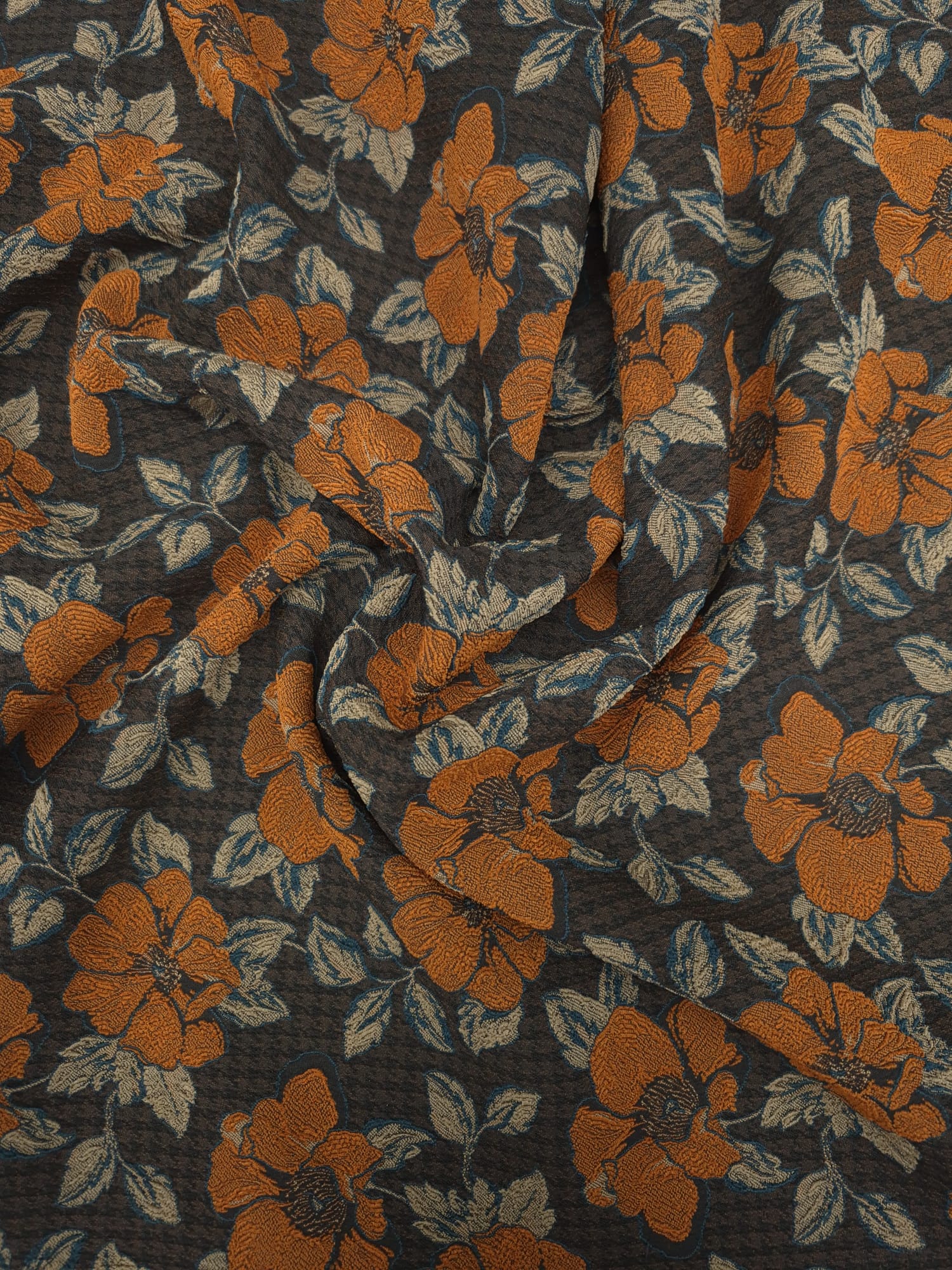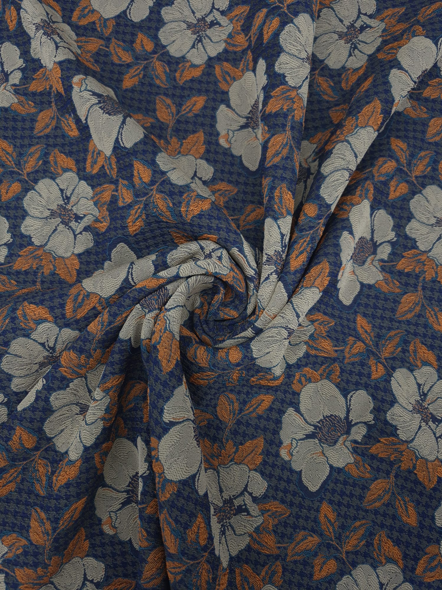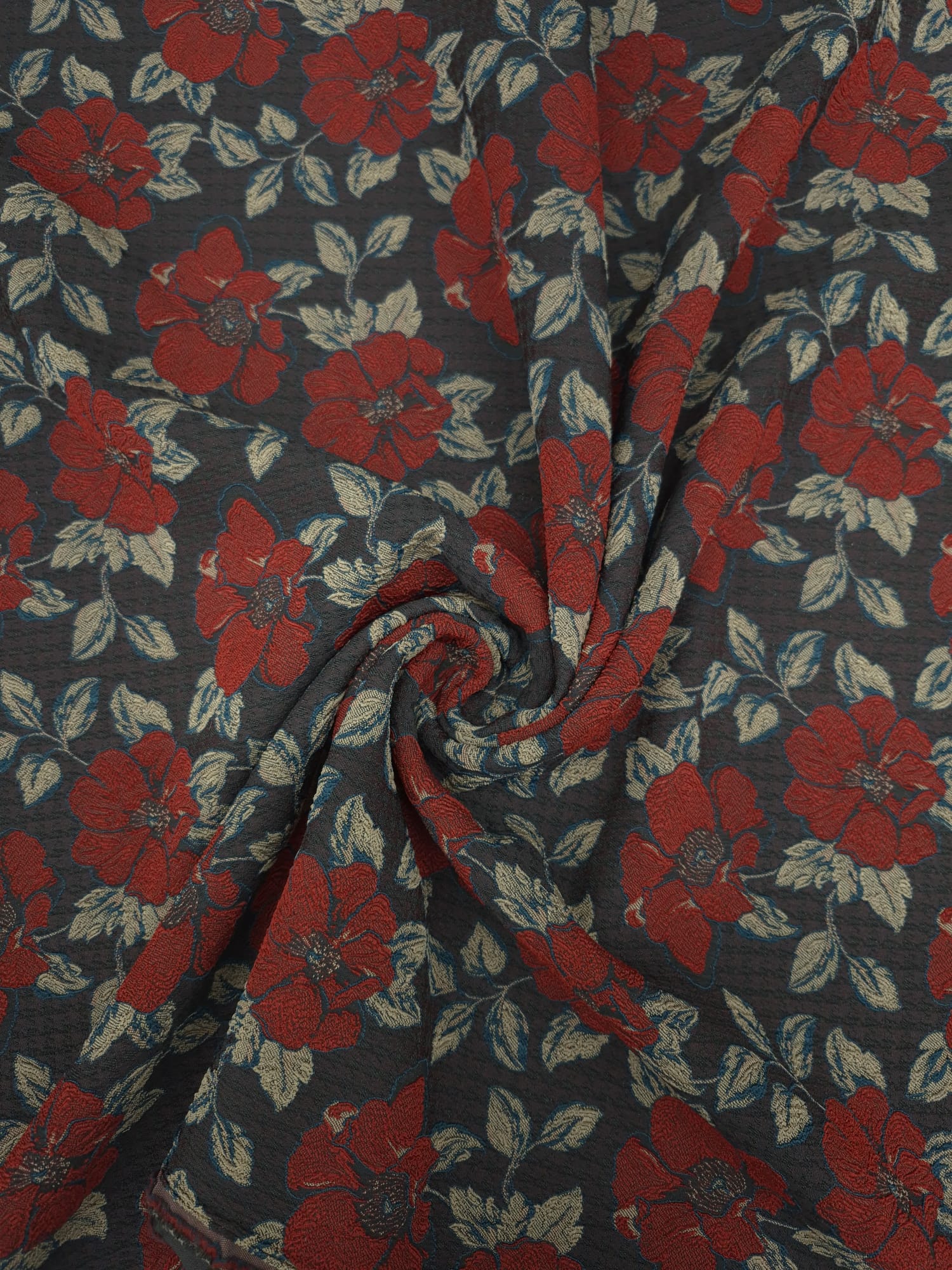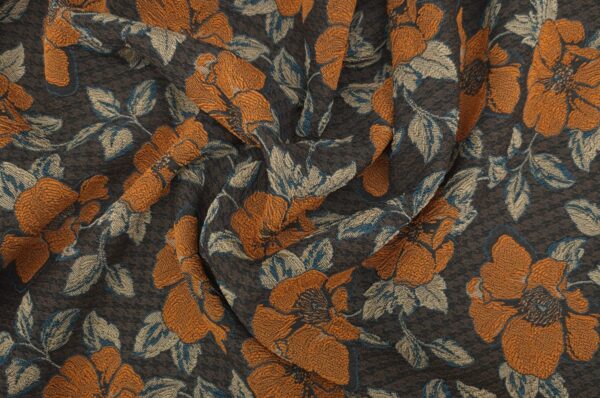 Poliviskon Brokar Kumaş, polyester ve viskon karışımının dayanıklılığı ile brokar dokumanın gösterişli desenlerini bir araya getiren şık ve kaliteli bir kumaş türüdür. Kabartmalı desen yapısı sayesinde ışığı farklı açılardan yansıtarak kumaşa derinlik ve lüks bir görünüm kazandırır. Tok duruşu, tasarımlara form kazandırır ve asil bir siluet oluşturur.