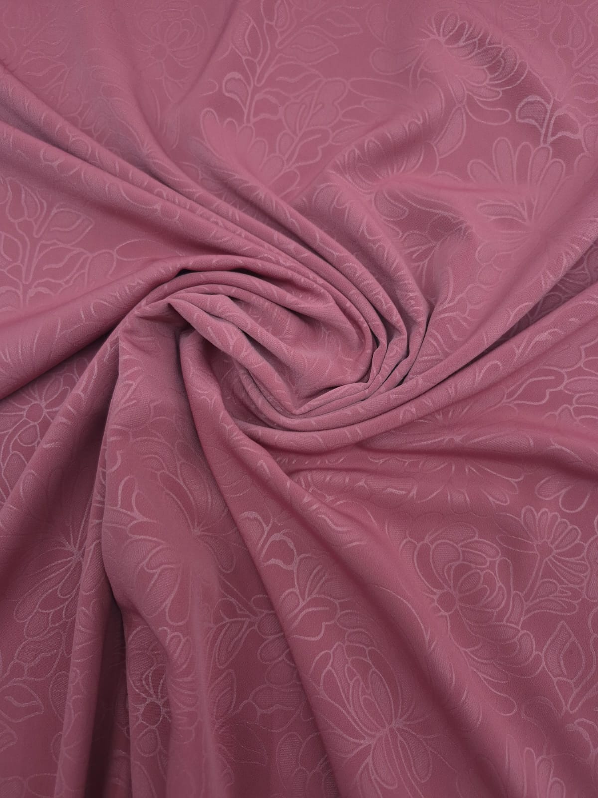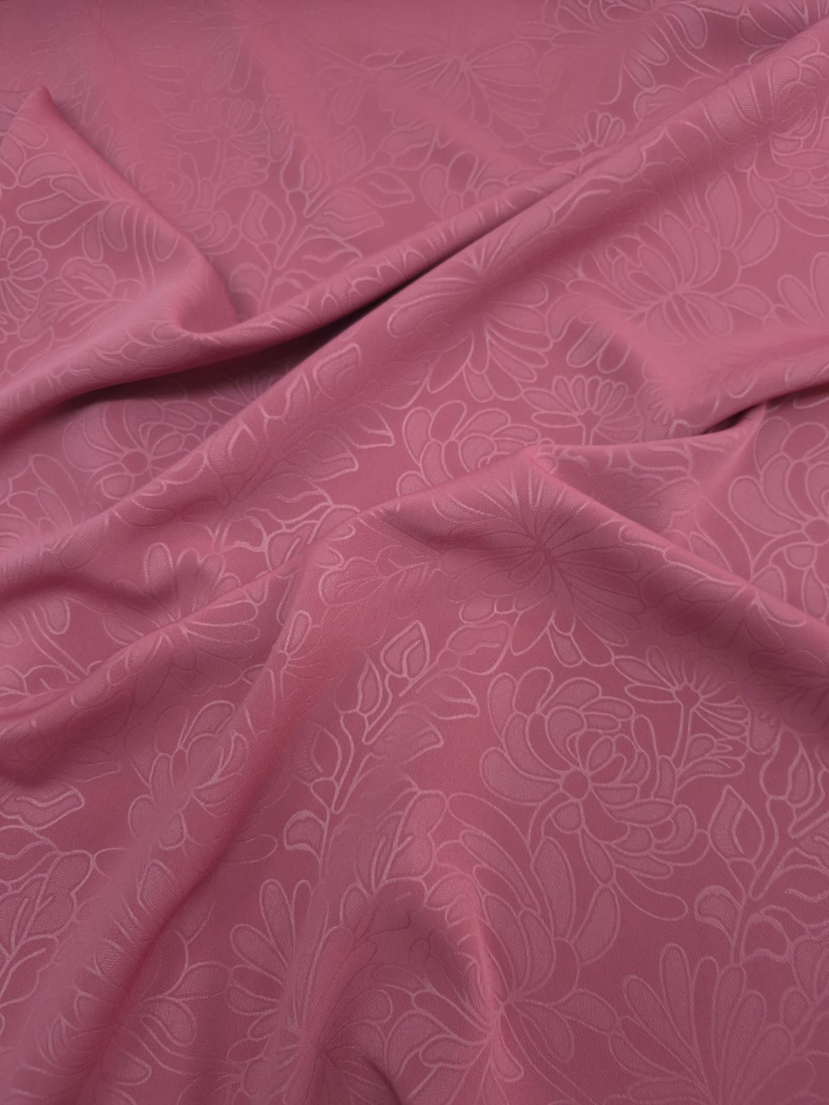 Kendinden Desenli Krep Kumaş, sade ve zarif şıklığıyla tasarımlarınıza modern bir hava katar.