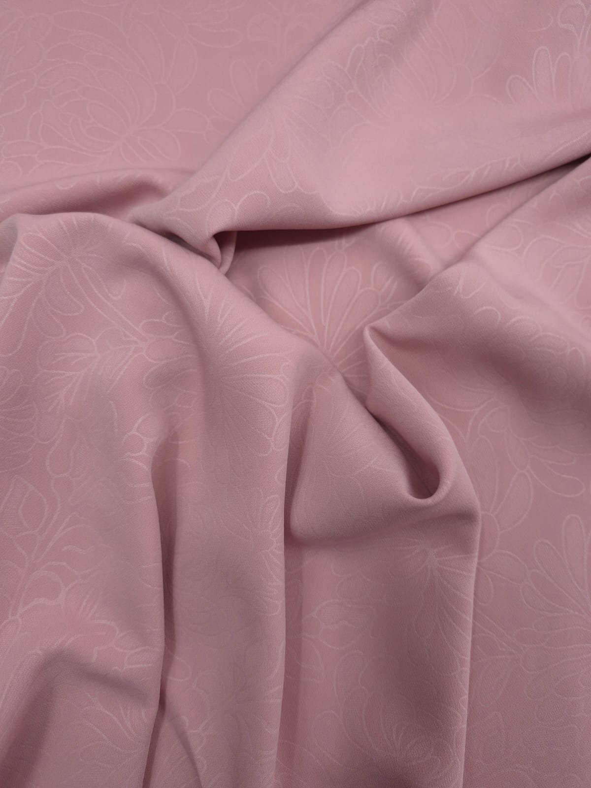 Kendinden Desenli Krep Kumaş, sade ve zarif şıklığıyla tasarımlarınıza modern bir hava katar.