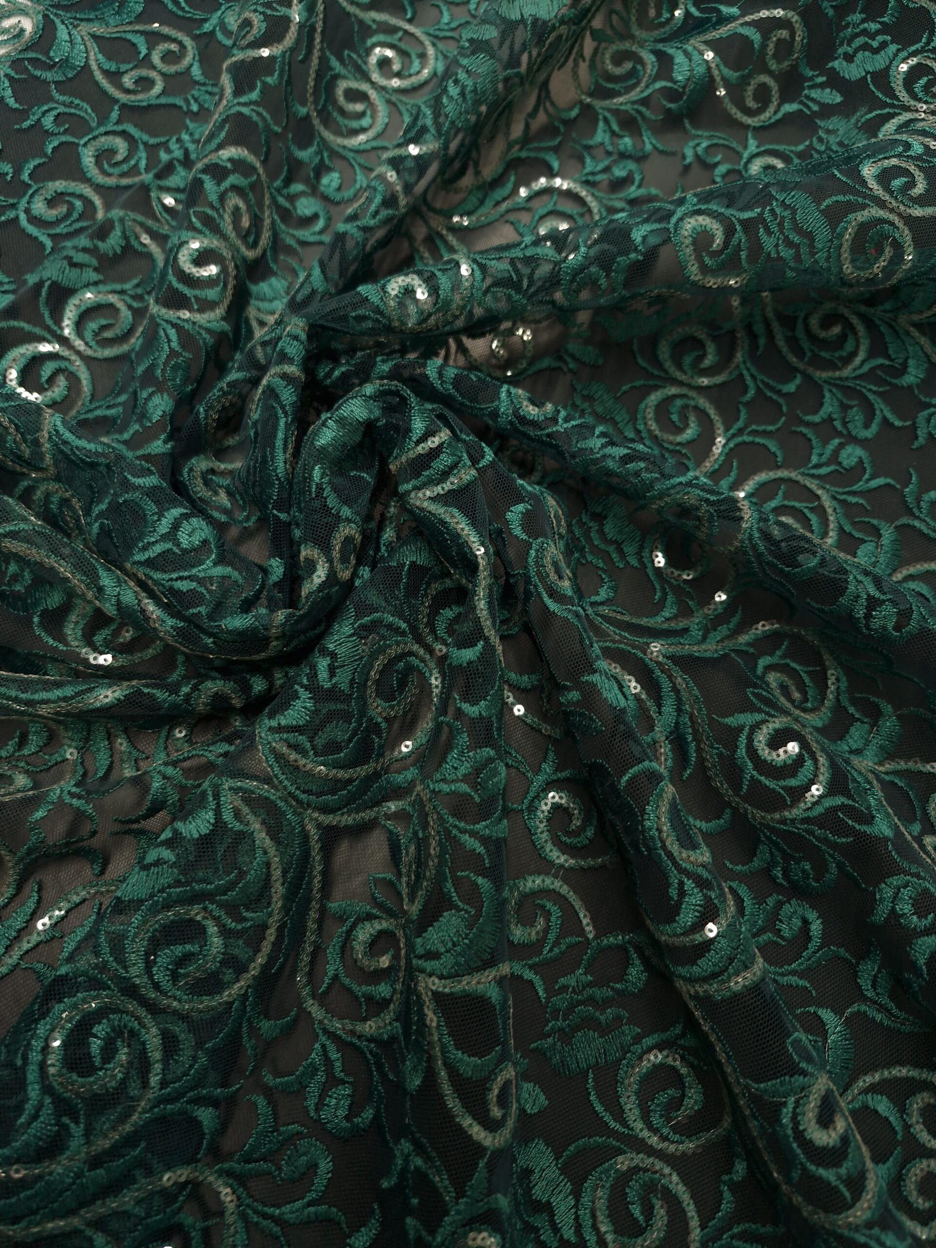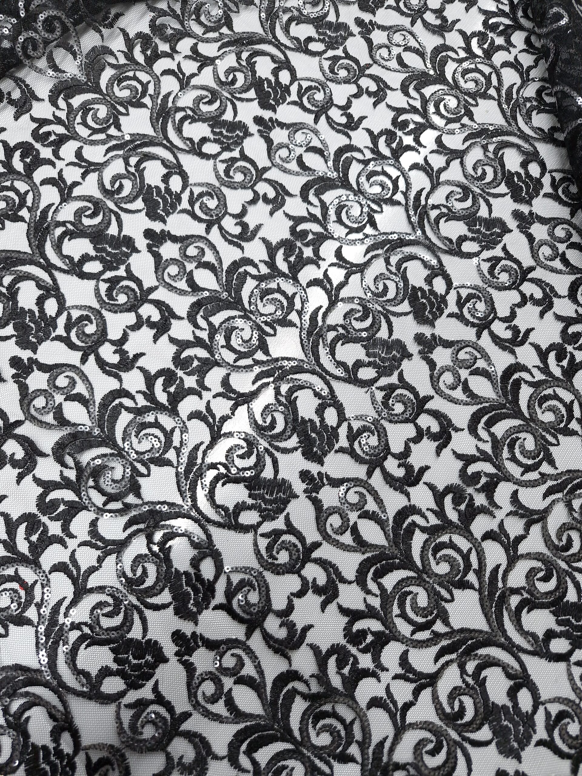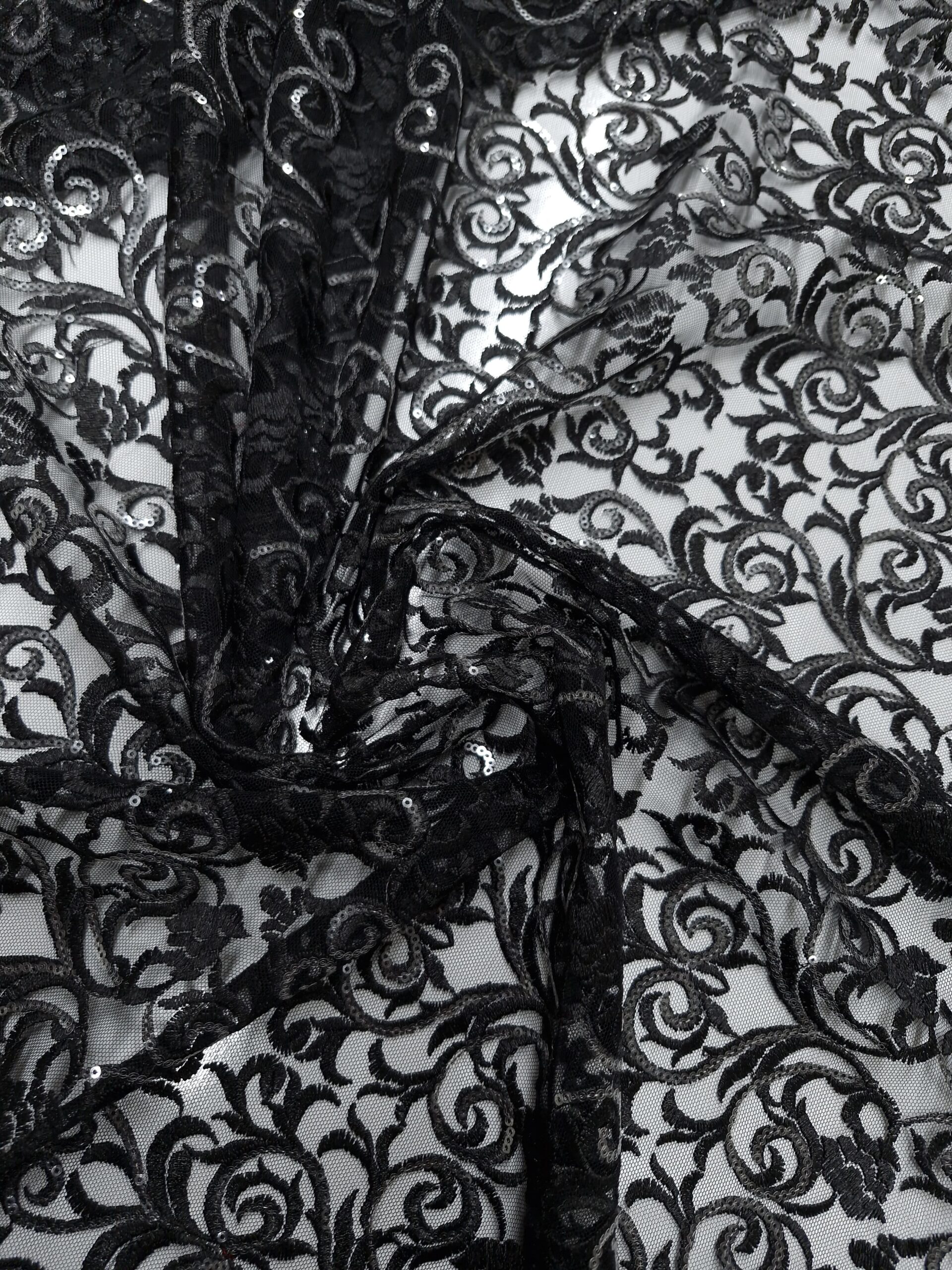 Özellikler: Tül zemin, simli işlemeli desen, parlak pul detayları, hafif ve dökümlü yapı