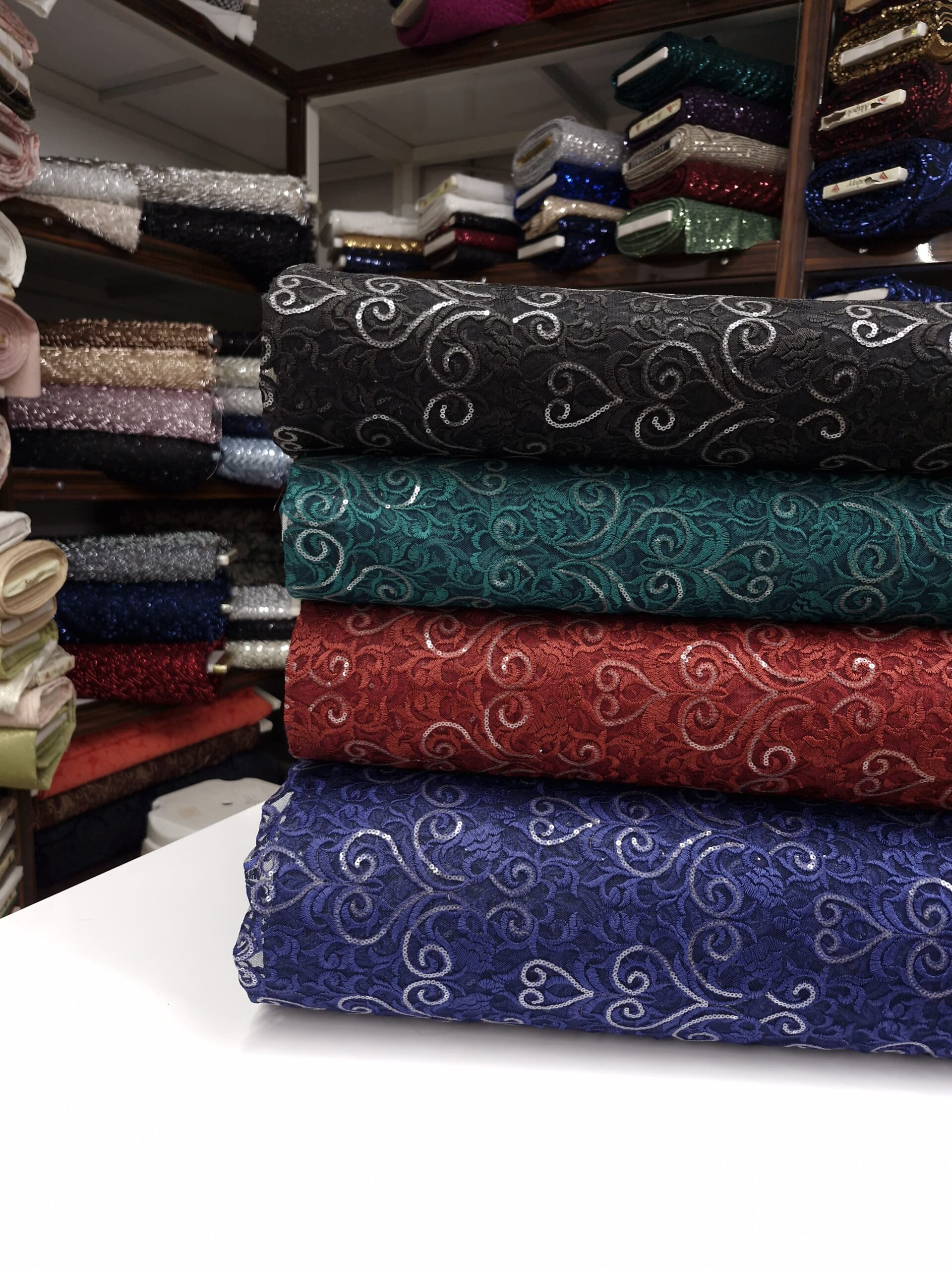 Pullu Dantel Kumaş, klasik dantelin şıklığını modern ışıltıyla buluşturur. Her tasarımı özel, her görünümü unutulmaz kılar.